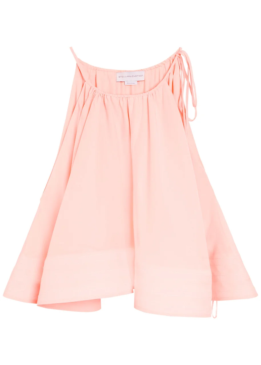 Info & Care Stella McCartney silk-crepe top Adjustable round-neck, gathered details, layered frill hem Slips on 100% silk Dry clean; Size & Fit Length shoulder to hem: 20 inches/ 51cm Midweight Flared from the shoulders; Model is 5'10"/ 178cm and wears a size;IT40