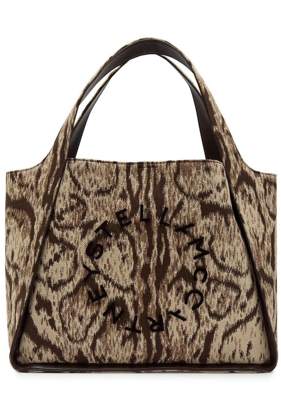 Stella Mccartney Logo Leopard-jacquard Canvas Tote bag