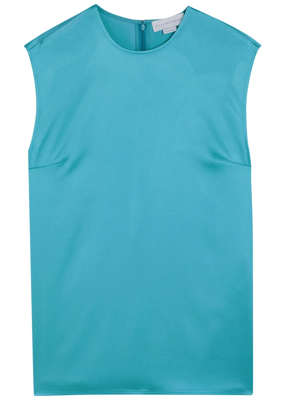 Info & Care Stella McCartney satin top Round-neck, darted bust Concealed hook and zip fastening at back 73% acetate, 27% viscose Dry clean Coordinating item available Size & Fit Length shoulder to hem: 26 inches/ 66cm Midweight Reguar fit Model is 5'8"/ 173cm and wears a size;IT40