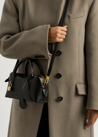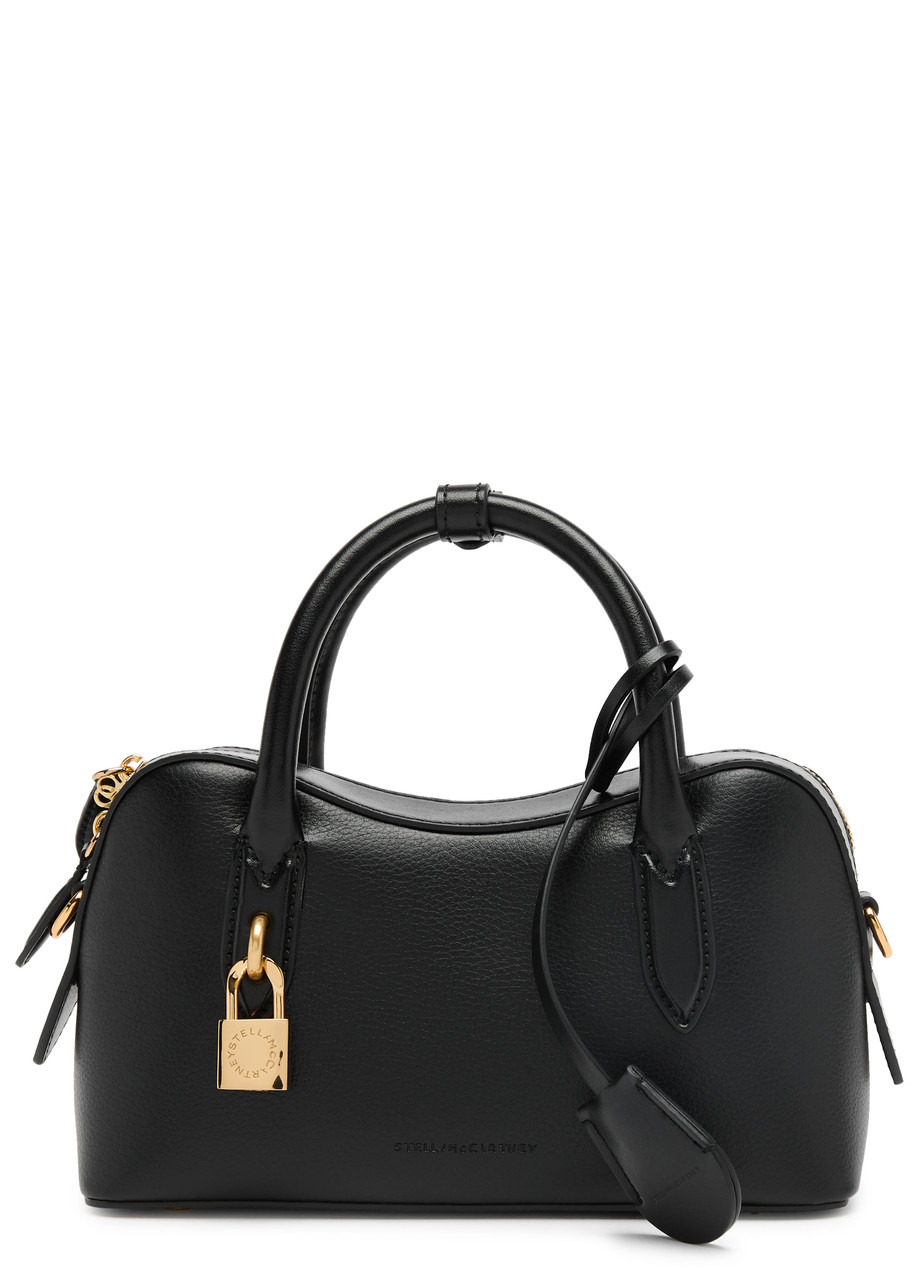 Info & Care Stella McCartney grained faux leather top handle bag Two top handles with press-stud fastening tab, detachable adjustable shoulder strap, debsossed designer stamp, detachable designer-engraved padlock, detachable designer-stamped tag with key, two internal slip pockets, fully lined Zip fastening across top Size & Fit Width: 9 inches/ 23cm Height: 5 inches/ 13cm Depth: 3.5 inches/ 9cm Top handle strap drop:; 3 inches/ 7.5cm Min shoulder strap drop: 21 inches/ 53.5cm Max shoulder strap drop: 24 inches/ 61cm