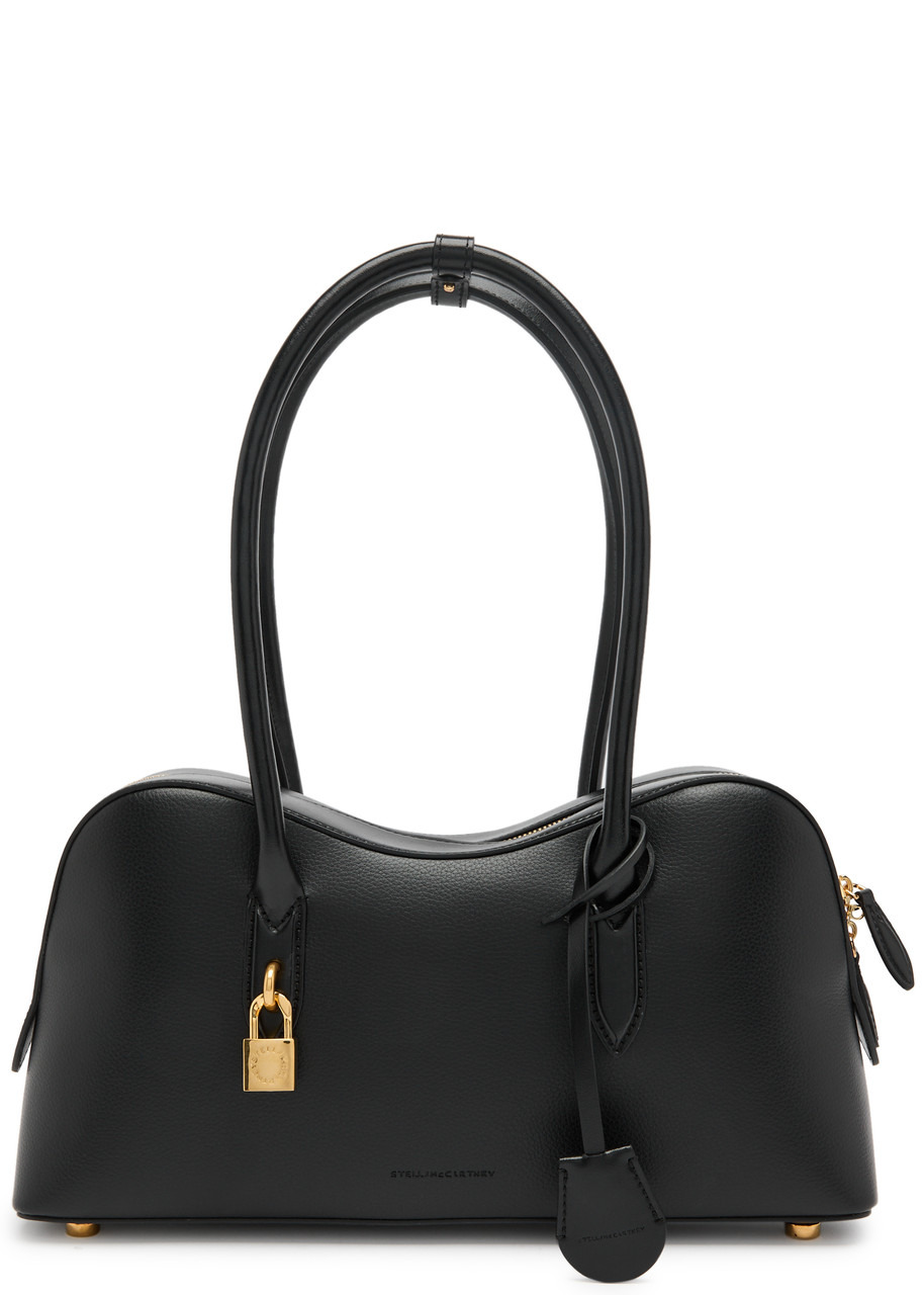 Info & Care Stella McCartney grained faux leather;shoulder bag Two top handles with press-stud fastening tab, detachable designer-engraved padlock, detachable designer-stamped tag with key, debossed designer stamp, feet, two internal slip pockets, fully lined Two-way zip fastening across top Size & Fit Width: 14 inches/ 35.5cm Height: 7 inches/ 18cm; 2: 6 inches/ 15.5cm Depth: 4 inches/ 10cm Top handle strap drop: 9 inches/ 23cm