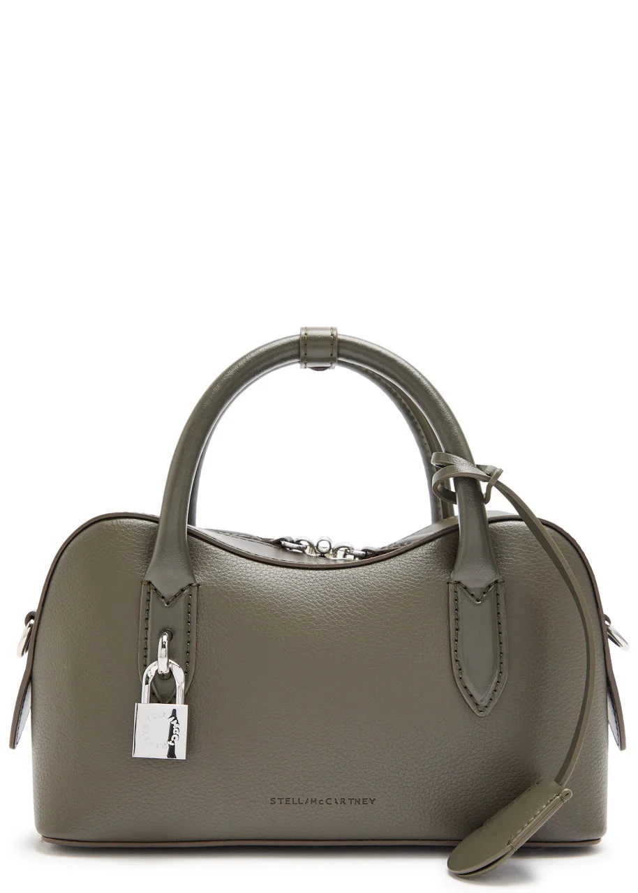 Info & Care Stella McCartney grained faux leather top handle bag Two top handles with press-stud fastening tab, detachable adjustable shoulder strap, debossed designer stamp, detachable designer-engraved padlock, detachable designer-stamped tag with key, two internal slip pockets, fully lined Zip fastening across top Size & Fit Width: 9 inches/ 23cm Height: 5 inches/ 13cm Depth: 3.5 inches/ 9cm Top handle strap drop:; 3 inches/ 7.5cm Min shoulder strap drop: 21 inches/ 53.5cm Max shoulder strap drop: 24 inches/ 61cm