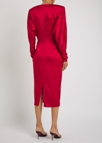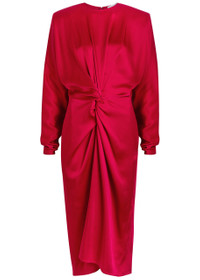 Info & Care Stella McCartney satin dress Round-neck, shoulder pads, dolman sleeves, twisted detail at front waist, side slip pockets, back vent Concealed zip fastening at back 73% acetate, 27% viscsoe Dry clean Size & Fit Length shoulder to hem: 49 inches/ 124.5cm Midweight Relaxed fit, slim across the waist Model is 5'9"/ 175cm and wears a size;IT40