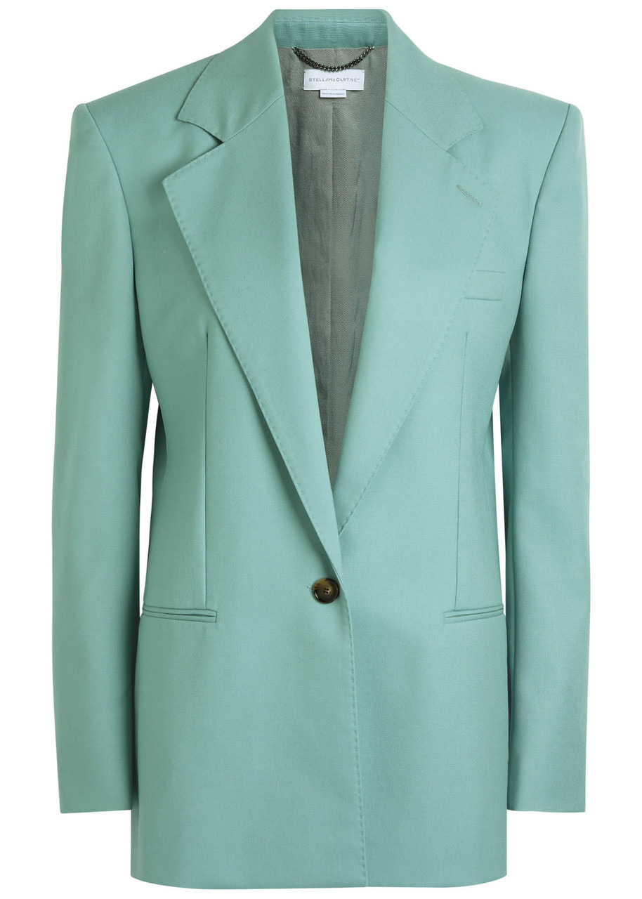 Info & Care Stella McCartney wool blazer Notched lapels, padded shoulders, button-fastening cuffs, three slit pockets at front, darts through waist, back vent, two internal slit pockets, fully lined Button fastening at front 100% wool; lining; 52% viscose, 48% cotton Dry clean Coordinating items available Size & Fit Length shoulder to hem: 30 inches/ 76.5cm Midweight Tailored,;oversized style Model is 5'9"/ 175cm and wears a size;IT40