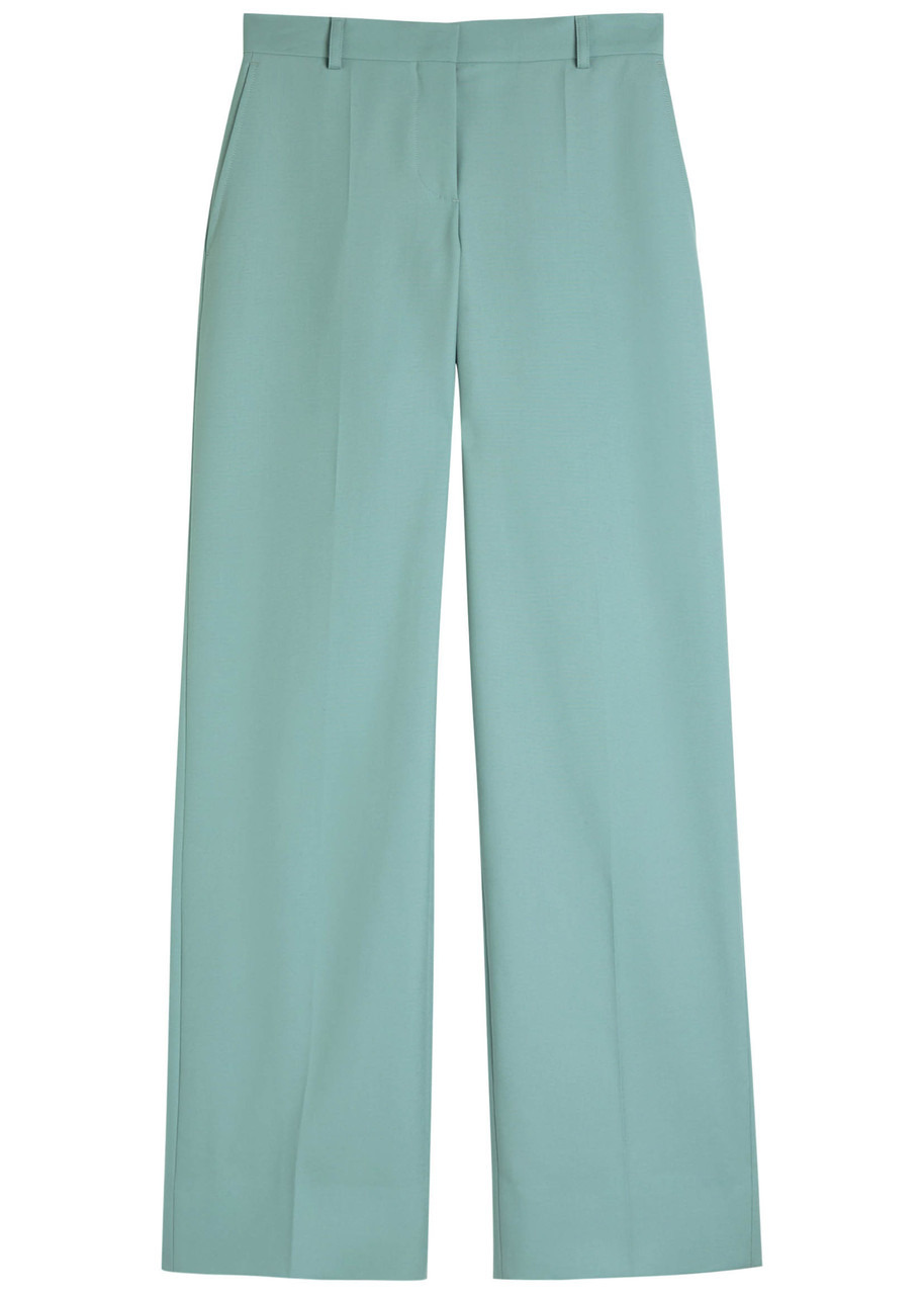 Info & Care Stella McCartney wool trousers Belt loops, side slip pockets, pressed crease through legs, button-fastening slit pocket at back Concealed zip, hook and button fastenings at front 100% wool Dry clean Coordinating items available Size & Fit Inside leg length: 38 inches/ 96.5cm Midweight Straight-leg cut Model is 5'9"/ 175cm and wears a size IT40 Please note, this style is particularly long in length