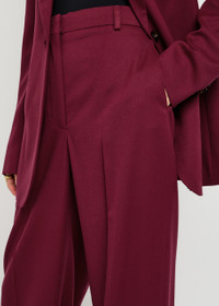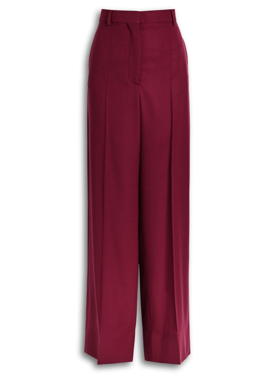 Info & Care Stella McCartney wool trousers Belt loops, side slip pockets, pressed creases through legs, button-fastening slit pocket at back Concealed zip, hook and button fastenings at front 100% wool Dry clean Size & Fit Inside leg length: 34 inches/ 86.5cm Midweight High-rise fit, wide-leg cut Model is 5'9"/ 175cm and wears a size IT40