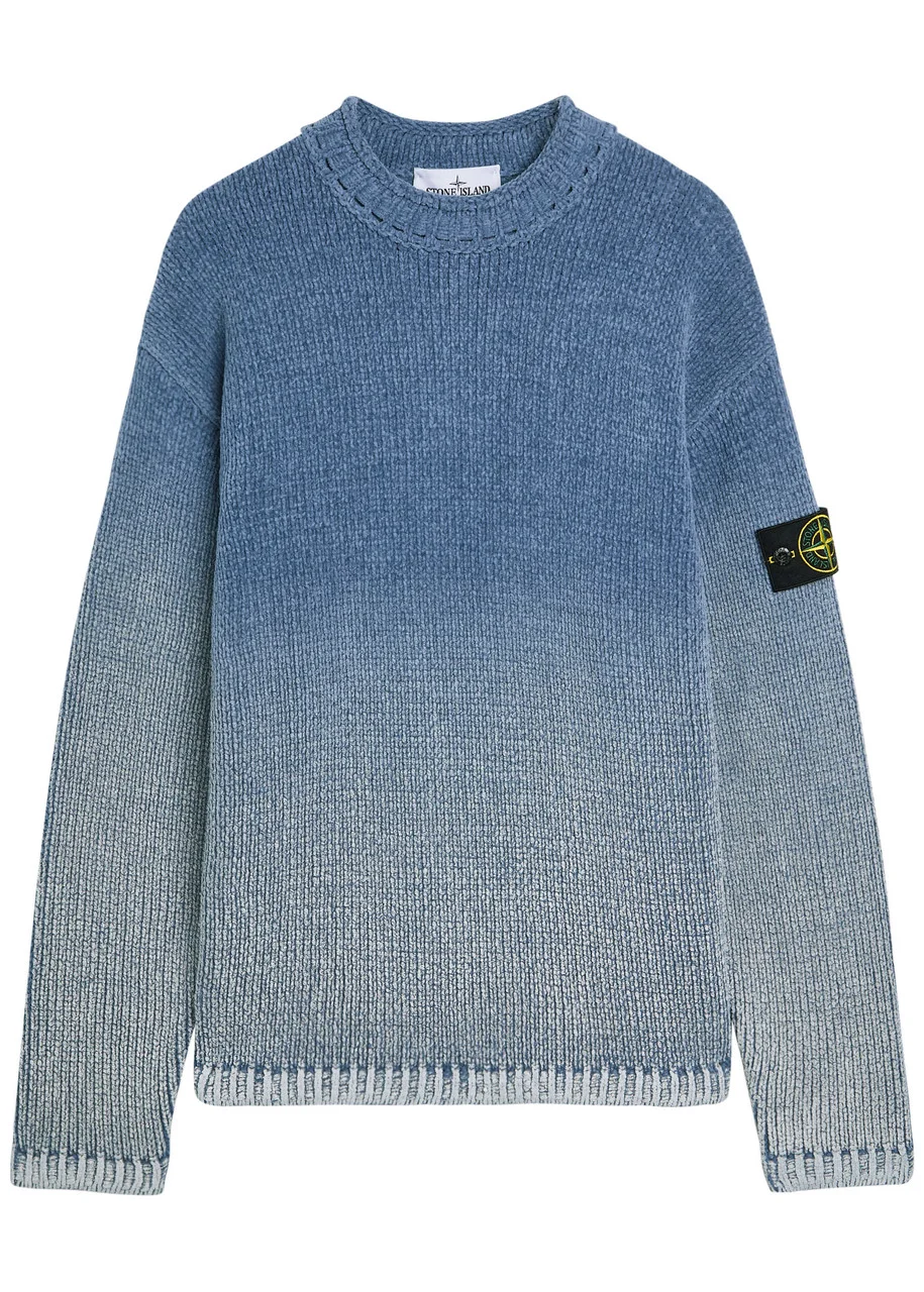 Info & Care Stone Island cotton jumper Degrade paint-effect print, crew-neck, detachable designer plaque at sleeve, ribbed trims Slips on 100% cotton Hand wash Size & Fit Length shoulder to hem: 27 inches/ 68.5cm Midweight Regular fit Model is 6'1"/ 185cm, chest size 38 inches and wears a size medium
