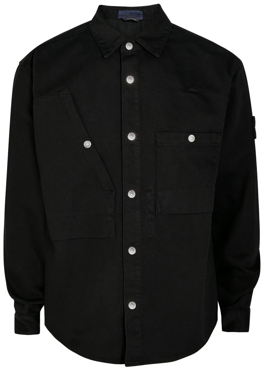 Info & Care Stone Island denim overshirt Detachable designer plaque at sleeve, press-stud fastening cuffs, press-stud fastening patch pockets, curved back hem, press-stud fastening internal patch pocket Press-stud fastenings through front 100% cotton Machine wash inside out to avoid colour transfer Size & Fit Length shoulder to hem: 26.5cm/ 67.5cm Midweight Relaxed fit Model is 6'1"/ 185cm, chest size 38.5 inches and wears a size medium