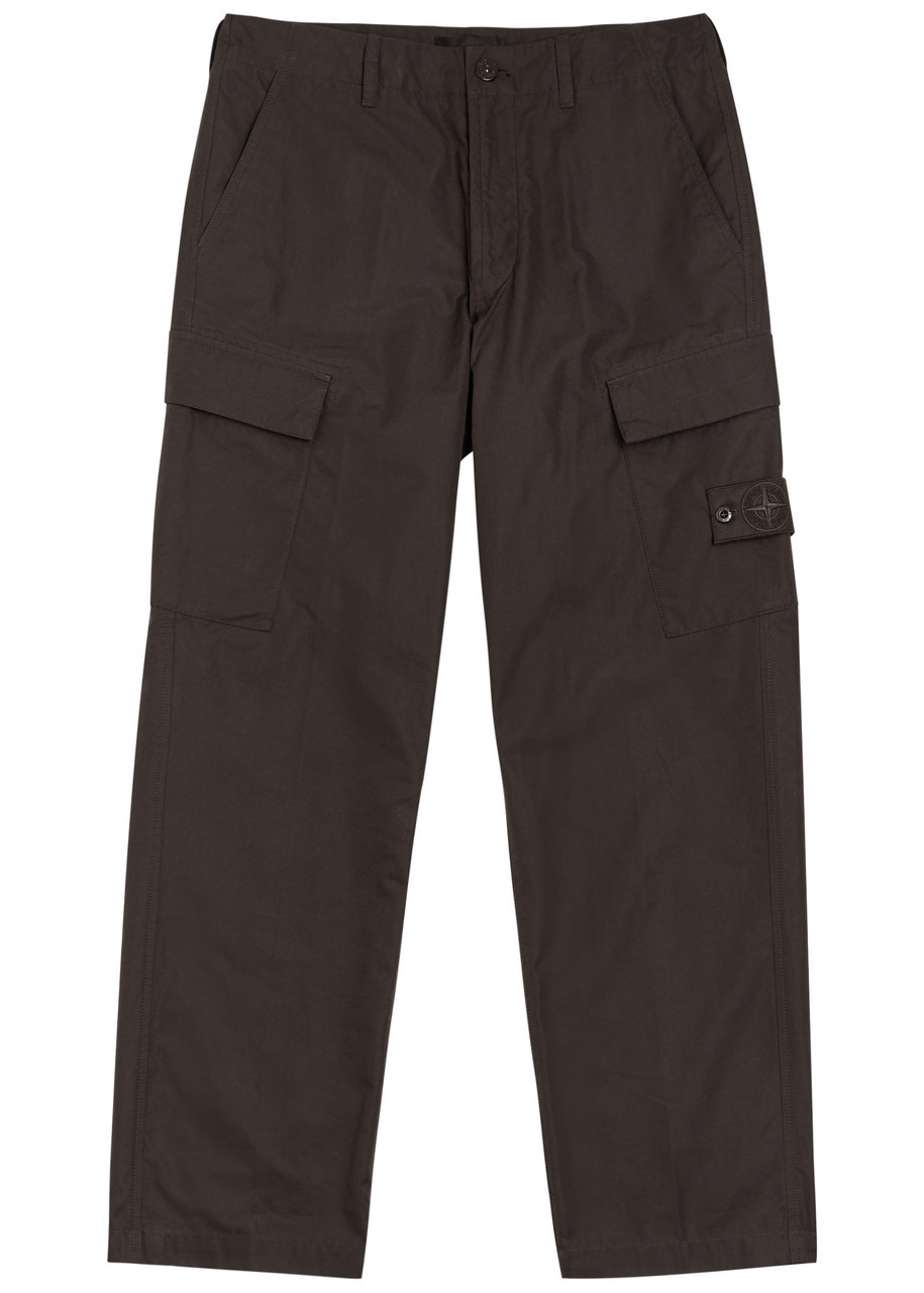 Info & Care Stone Island cotton-poplin cargo trousers Belt loops, side slant pockets, press-stud fastening side flap pockets, detachable designer plaque, press-stud fastening back slit pockets Partially concealed zip and button fastening at front 100% cotton Machine wash; Size & Fit Inside leg length: 31 inches/ 79cm Midweight Relaxed straight-leg cut, tapered at the ankle Model is 6'1"/ 185cm and wears a size;W32