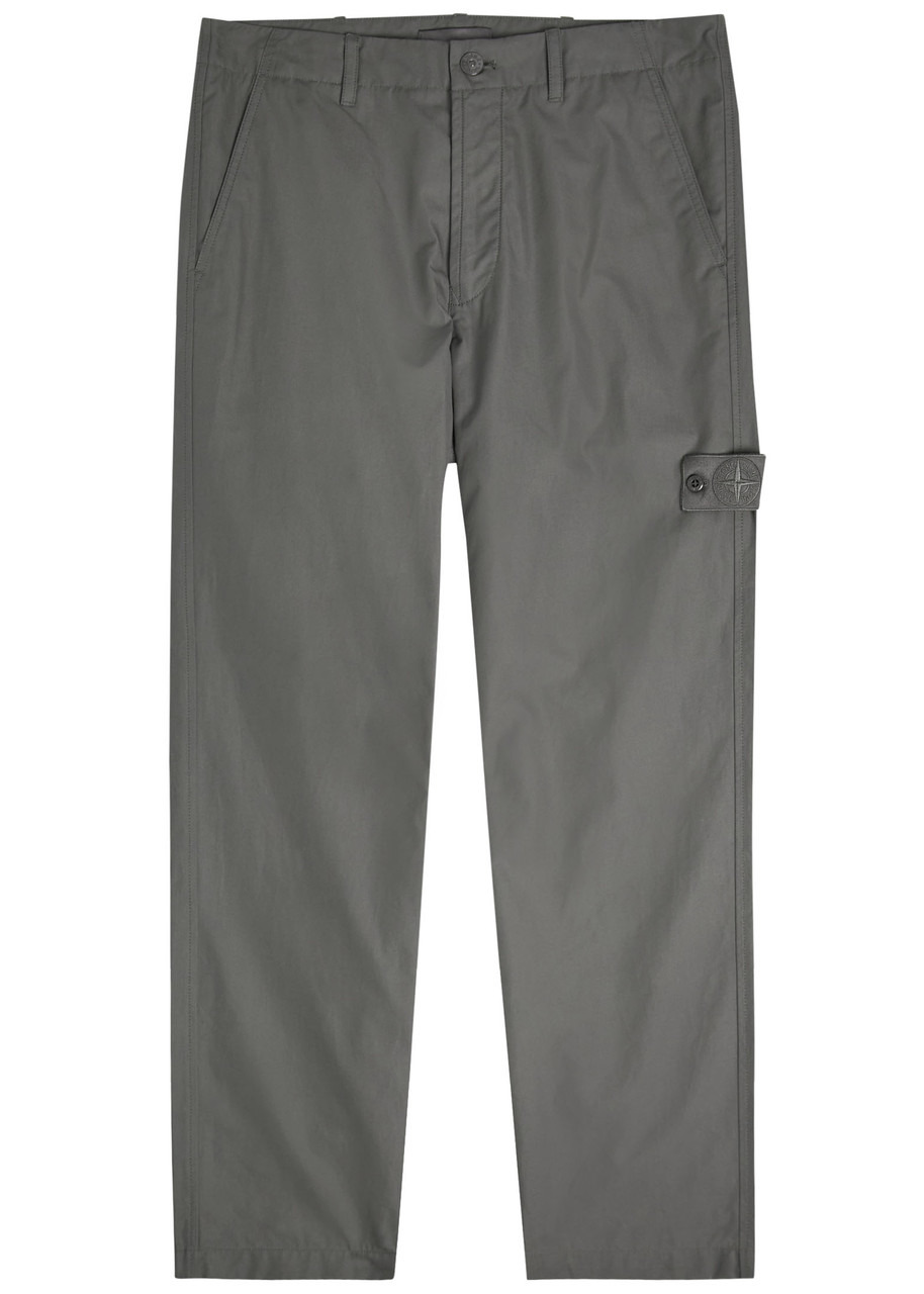 Info & Care Stone Island cotton-poplin cargo trousers Belt loops, side slant pockets, press-stud fastening side flap pockets, detachable designer plaque, press-stud fastening back slit pockets Partially concealed zip and button fastening at front 100% cotton Machine wash; Size & Fit Inside leg length: 31 inches/ 79cm Midweight Relaxed straight-leg cut Model is 6'1"/ 185cm and wears a size W32