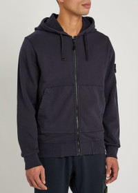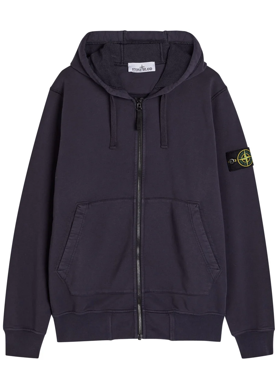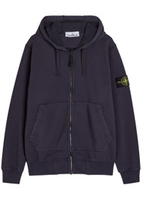 Info & Care Stone Island cotton sweatshirt; Drawstring hood, detachable designer plaque at sleeve, front patch pocket, ribbed trims; Zip fastening through front 100% cotton Machine wash; Size & Fit Length shoulder to hem: 26 inches/ 66cm Midweight Relaxed fit Model is 6'1"/ 185cm, chest size 36 inches and wears a size medium