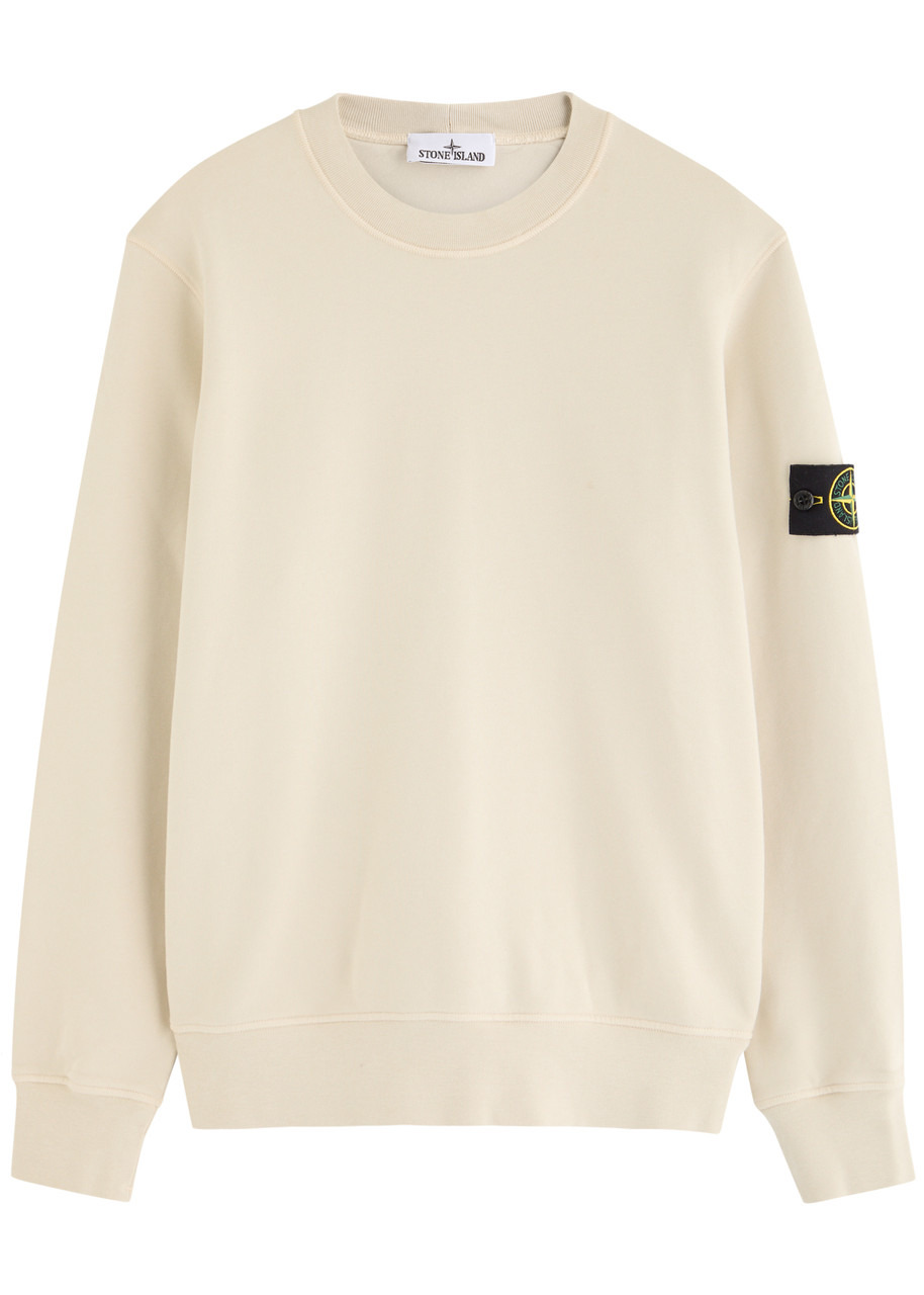 Info & Care Stone Island cotton sweatshirt Crew-neck, detachable designer plaque at sleeve, ribbed trims Slips on 100% cotton Machine wash Size & Fit Length shoulder to hem: 27.5 inches/ 70cm Midweight Regular fit Model is 6'3"/ 191cm, chest size 38 inches and wears a size medium