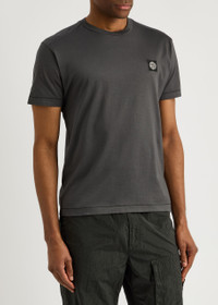 Info & Care Stone Island cotton T-shirt; Ribbed crew-neck, dropped shoulders, designer plaque; Slips on; 100% cotton; Machine wash; Size & Fit Length shoulder to hem: 27 inches/ 68.5cm Midweight; Regular fit; Model is 6'3"/ 191cm, chest size 38 inches and wears a size medium