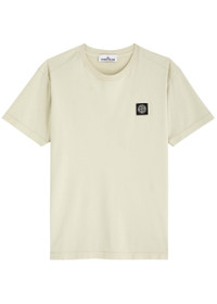 Info & Care Stone Island cotton T-shirt; Ribbed crew-neck, dropped shoulders, designer plaque; Slips on; 100% cotton; Machine wash; Size & Fit Length shoulder to hem: 27 inches/ 68.5cm Midweight; Regular fit; Model is 6'3"/ 191cm, chest size 38 inches and wears a size medium