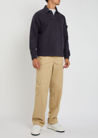 Stone Island Logo Slubbed Cotton Polo Sweatshirt