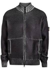 Info & Care Stone Island knit cardigan Sublimatic print, mock-neck, dropped shoulders, detachable designer plaque at sleeve, front slip pockets, ribbed trims; Two-way zip fastening through front 75% polyester, 20% polyamide, 5% elastane Hand wash Size & Fit Length shoulder to hem: 26 inches/ 66cm Heavyweight Relaxed fit Model is 6'1"/ 185cm, chest size 36 inches and wears a size medium