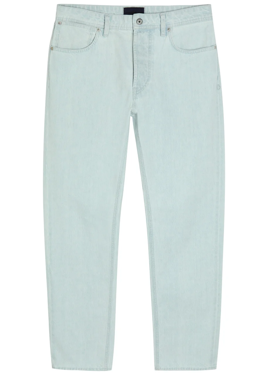 Info & Care Stone Island denim jeans Mid-rise fit, tapered-leg cut, belt loops, five pockets, embroidered logo at side seam, detachable designer plaque at back, washed finish Partially concealed button fastenings at front 100% cotton Machine wash cold inside out to avoid colour transfer; Size & Fit Front rise: 11 inches/ 28cm Inside leg length: 32 inches/ 81cm Midweight Model is 6'2"/ 188cm and wears a size W32
