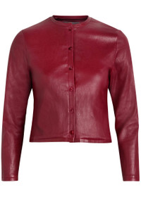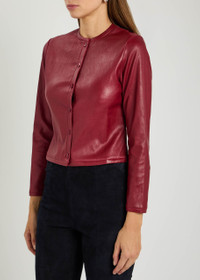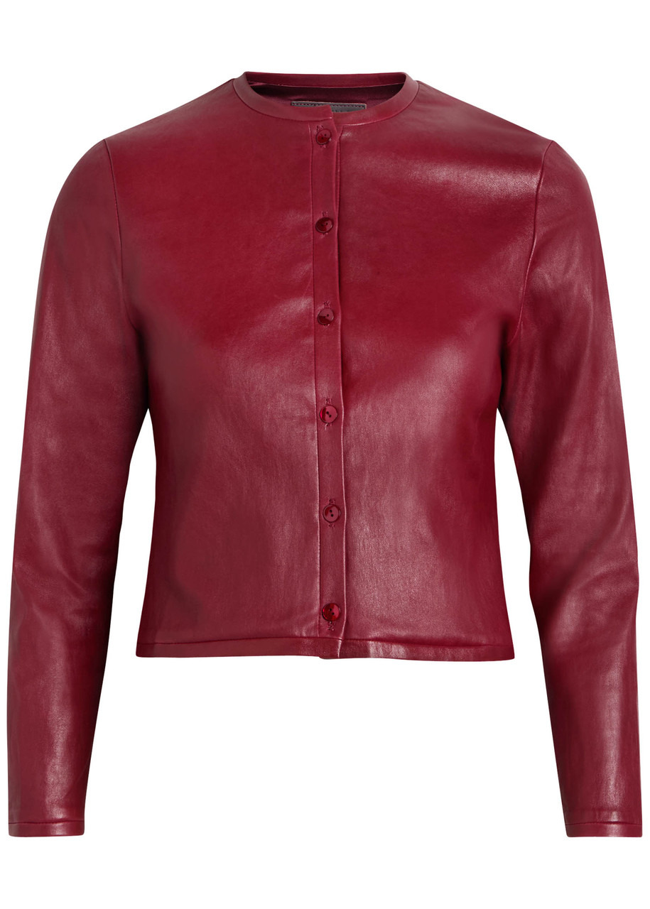 Info & Care Stouls stretch-leather cardigan Round-neck Button fastenings through front Fabric 1: 100% lambskin leather; fabric 2: 97% cotton, 2.4% lyocell, 0.6% elastane Machine wash; Size & Fit Length shoulder to hem: 18 inches/ 56cm Midweight Slim;fit, slightly cropped Model is 5'9"/ 175cm and wears a size small