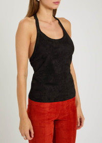 Info & Care Stouls stretch-suede top Halterneck, scoop-neck, low back Slips on Fabric 1: 100% lambskin; fabric 2: 97% cotton, 2.4% lyocell, 0.6% elastane Machine wash; Size & Fit Length shoulder to hem: 21 inches/ 53.5cm Midweight Slim;fit Model is 5'9"/ 175cm and wears a size small