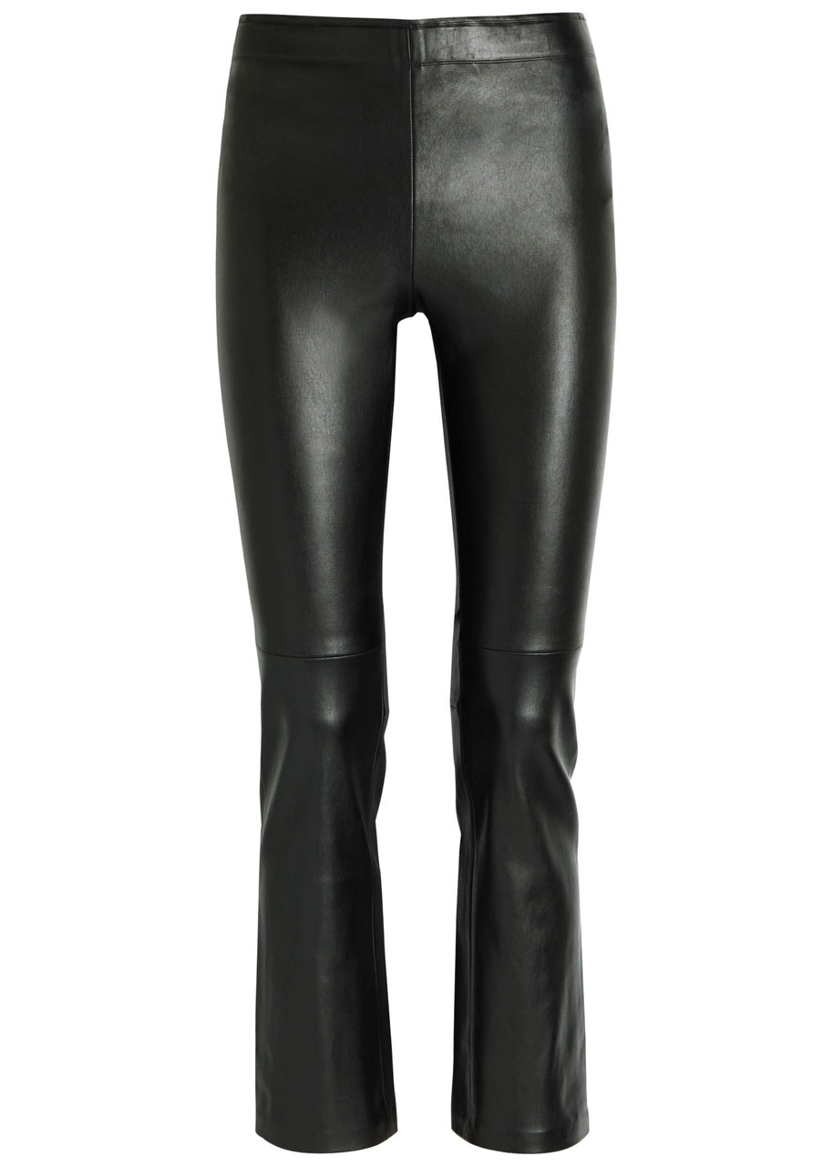 Info & Care Stouls stretch-leather trousers Elasticated waistband,;back yoke Pull on Fabric 1: 100% lambskin leather; fabric 2: 97% cotton, 2.4% lyocell, 0.6% elastane Machine wash; Coordinating items available Size & Fit Inside leg length: 27.5 inches/ 70cm Midweight Slim, flared-leg cut Model is 5'9"/ 175cm and wears a size small