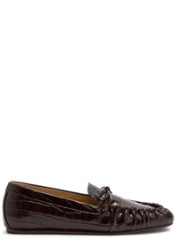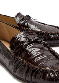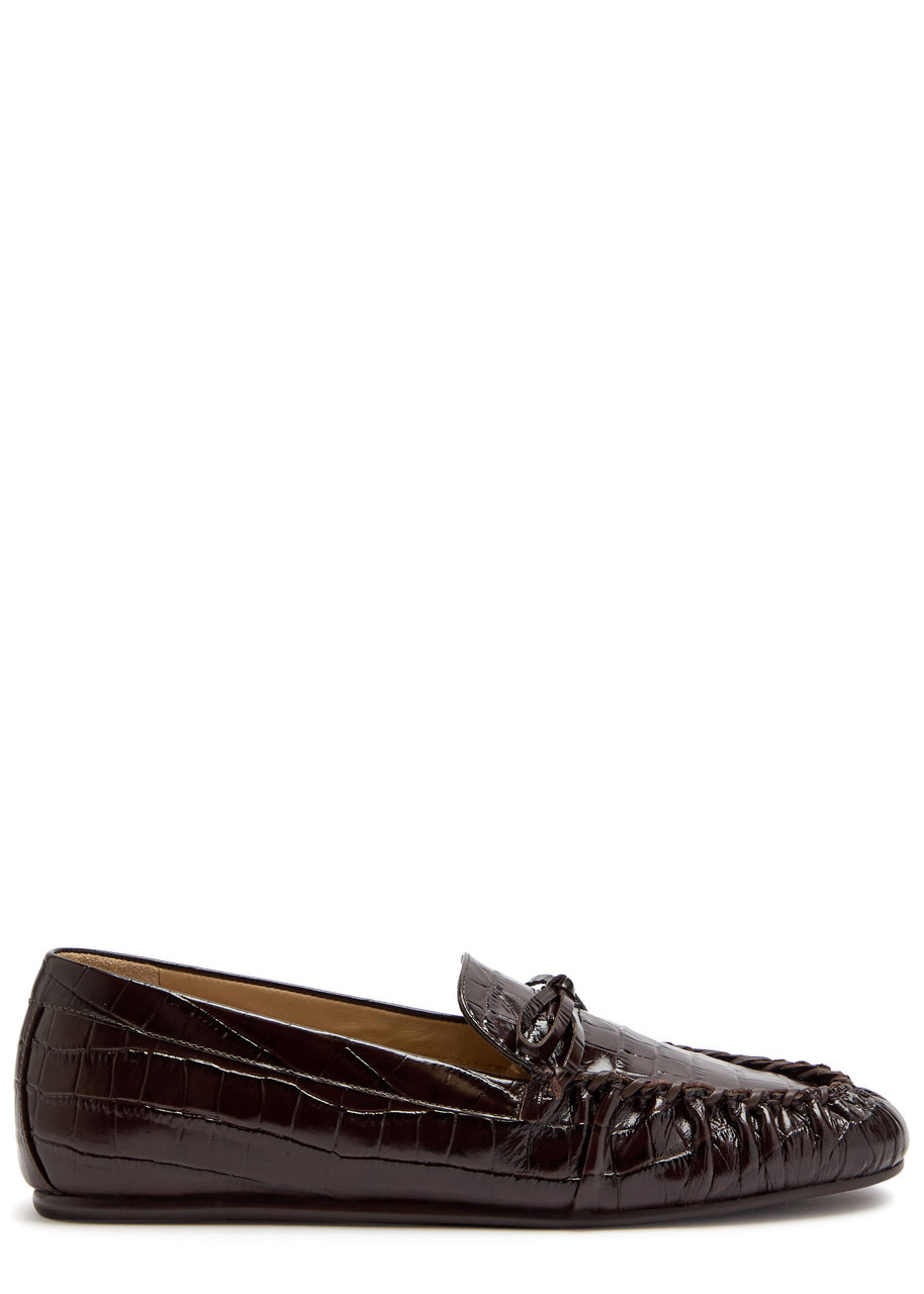 Stuart Weitzman Britt Bow Crocodile-effect Patent Leather Loafers