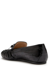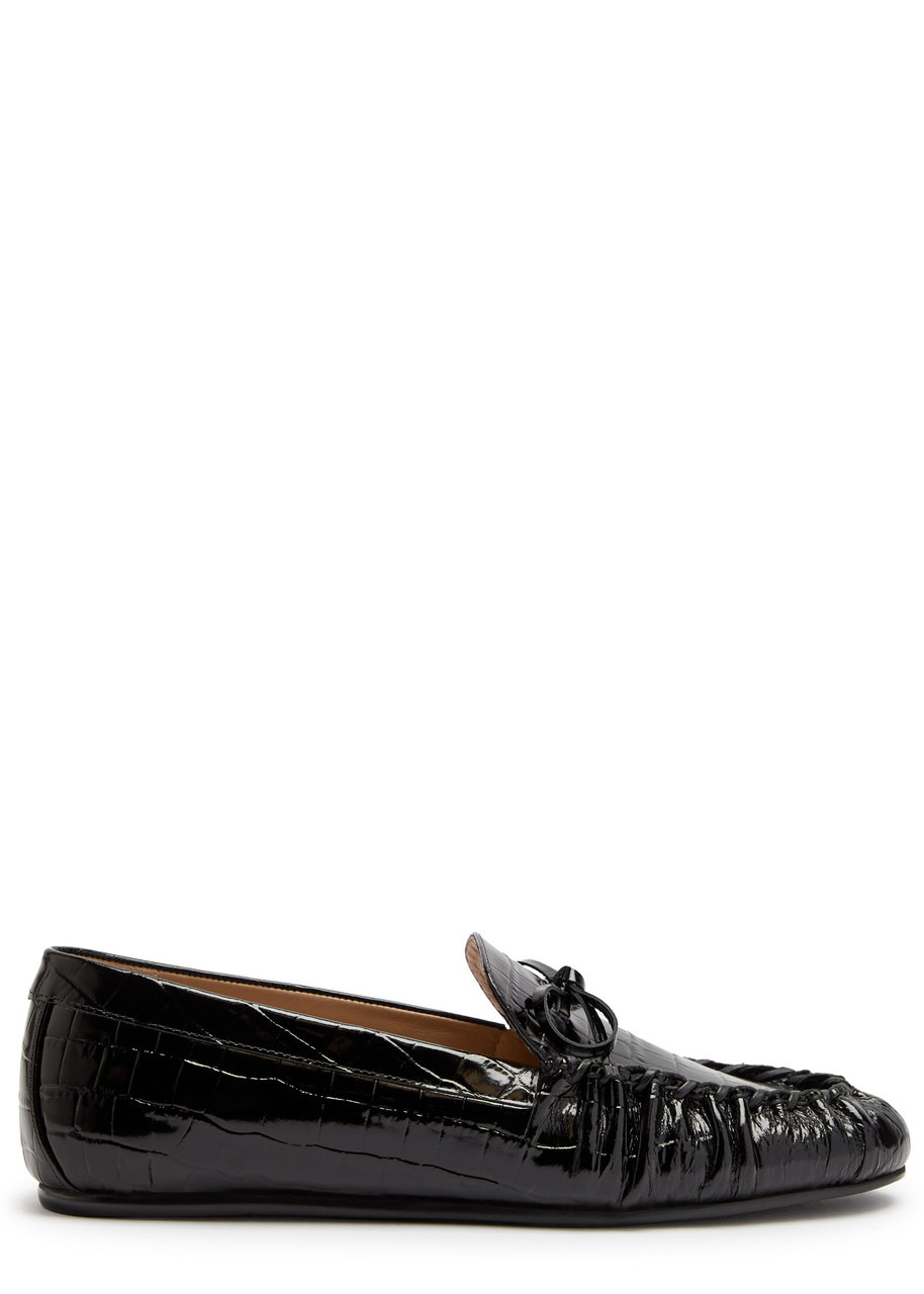 Stuart Weitzman Britt Bow Crocodile-effect Patent Leather Loafers