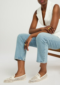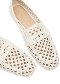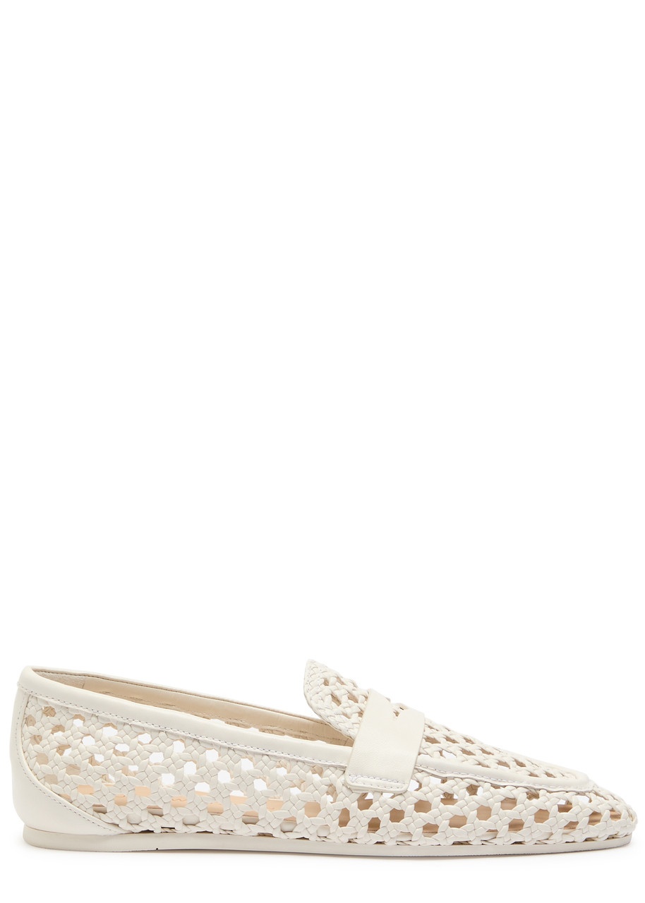 Info & Care Stuart Weitzman woven leather loafers Open weave design, cut-out at leather strap, rubber sole, almond toe Slips on Size & Fit Only available in full sizes, go up to the nearest whole size if you take a half size
