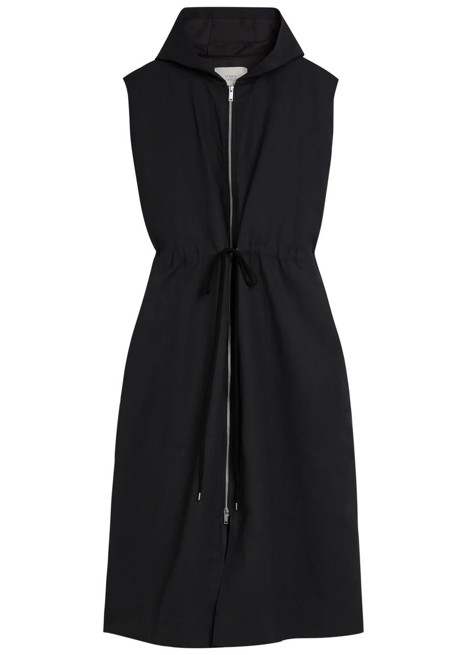 Info & Care Studio Nicholson woven dress Hood, drawstring waist, side slip pockets Two-way zip fastening through front 57% ecovero viscose, 43% linen Dry clean Size & Fit Length shoulder to hem: 52 inches/ 132cm Midweight Relaxed fit, use drawstring to cinch the waist Model is 5'10"/ 178cm and wears a size;UK8