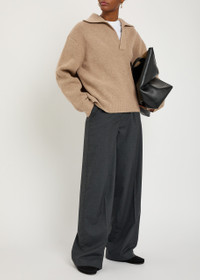 Info & Care Studio Nicholson merino wool jumper Ribbed, open collar, dropped shoulders Slips on 100% merino wool Hand wash Size & Fit Length shoulder to hem: 27 inches/ 68.5cm Midweight Relaxed fit Model is 5'10"/ 178cm and wears a size small