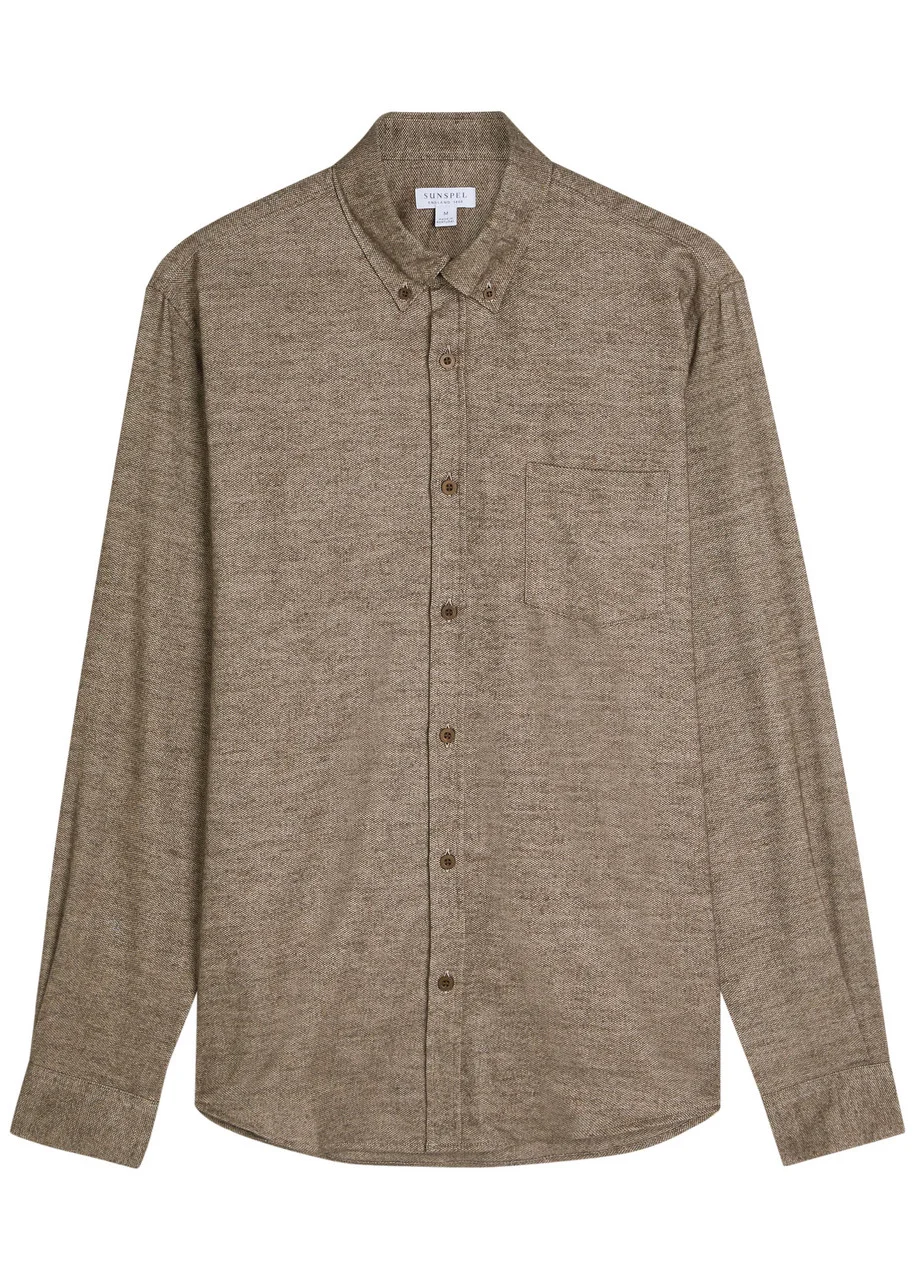 Info & Care Sunspel cotton;shirt Button-down collar, adjustable button-fastening cuffs, chest patch pocket, curved hem Button fastenings through front 100% cotton Machine wash Size & Fit Length shoulder to hem: 28 inches/ 71cm Midweight Regular fit Model is 6'2"/ 188cm, chest size 38 inches and wears a size medium