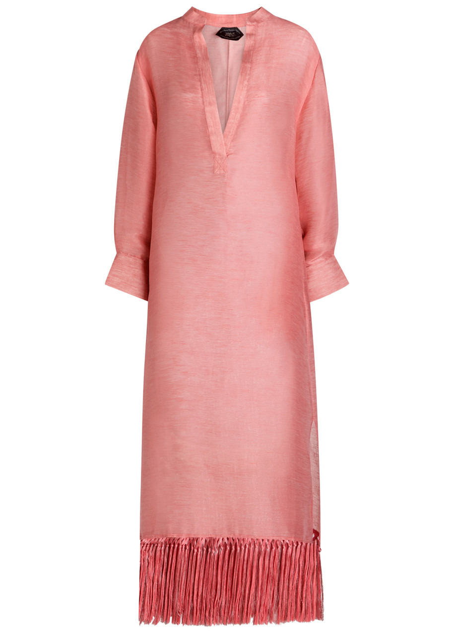 Info & Care Taller Marmo linen-blend dress V-neck, button-fastening cuffs, side slip pockets, side splits at hem, fringed ends Slips on 57% linen, 30% viscose, 13% polyamide Dry clean Size & Fit Length shoulder to hem: 48 inches/ 122cm Midweight Loose;fit Model is 5'10"/ 178cm and wears a size;IT40
