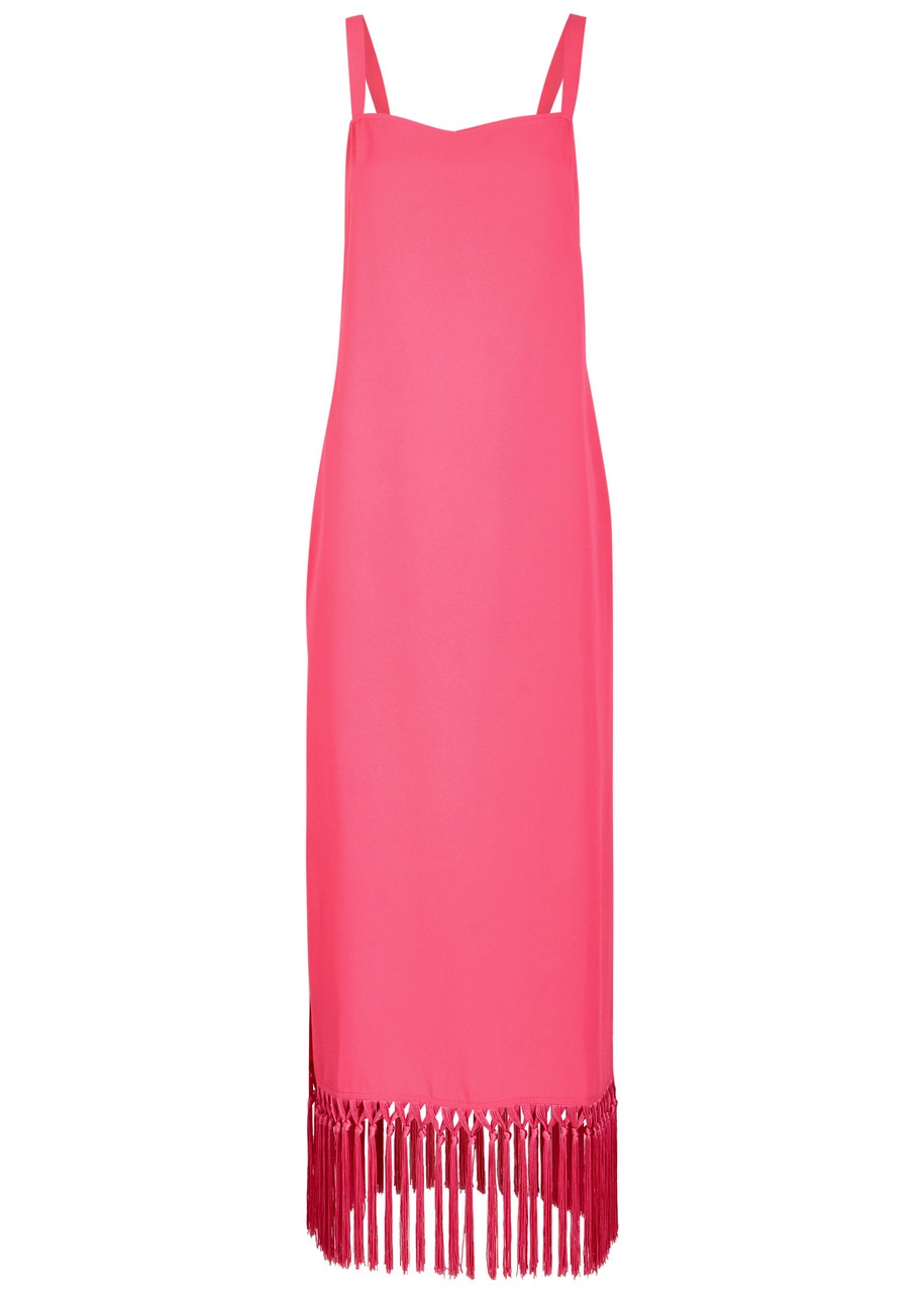 Info & Care Taller Marmo crepe dress Square-neck, fringed hem, side split, satin lining Concealed zip fastening at back 78% acetate, 22% viscose Dry clean Size & Fit Length shoulder to hem: 57 inches/ 144.4cm Midweight Regular fit Model is 5'9"/ 175cm and wears a size;IT40