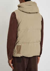 Info & Care Ten c shell gilet Padded, drawstring hood, funnel-neck, elasticated underlay trims at armholes, press-stud fastening front slip pockets, designer plaque at back, concentric stitching at trims, concealed drawstring at hem, crinkled finish, fully lined Concealed hook, zip and press-stud fastenings through front 100% polyamide; filling: 100% white duck down Machine wash Size & Fit Length shoulder to hem: 25 inches/ 63.5cm Midweight Regular fit Model is 6'1"/ 185cm, chest size 36 inches and wears a size IT48