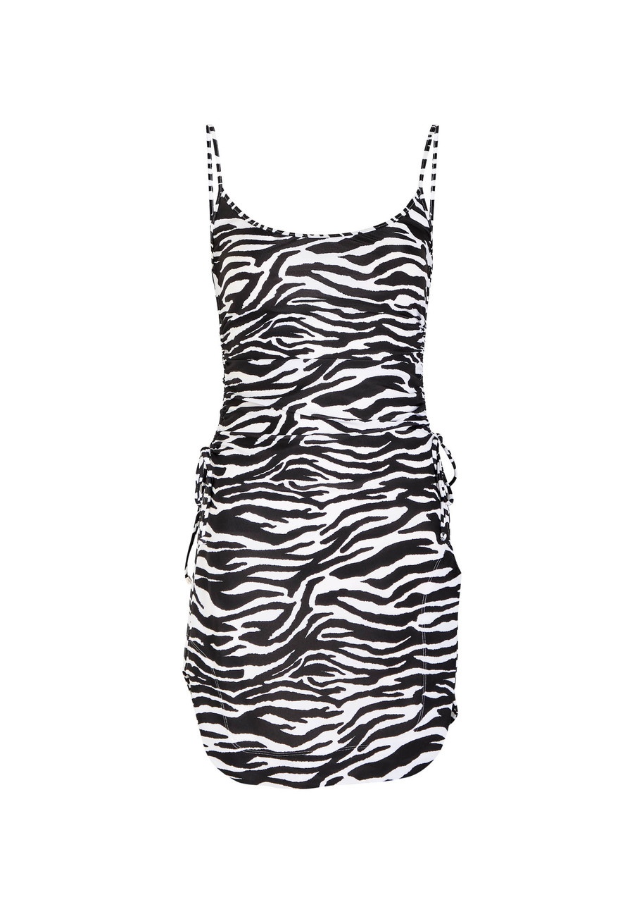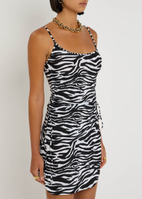 Info & Care The Attico stretch-jersey dress Zebra print, scoop-neck, adjustable ruched sides with designer hardware, side splits at hem, partially lined Slips on 80% polyamide, 20% elastane Hand wash Size & Fit Length shoulder to hem: 33 inches/ 84cm Midweight Slim fit Model is 5'9"/ 175cm and wears a size;IT40