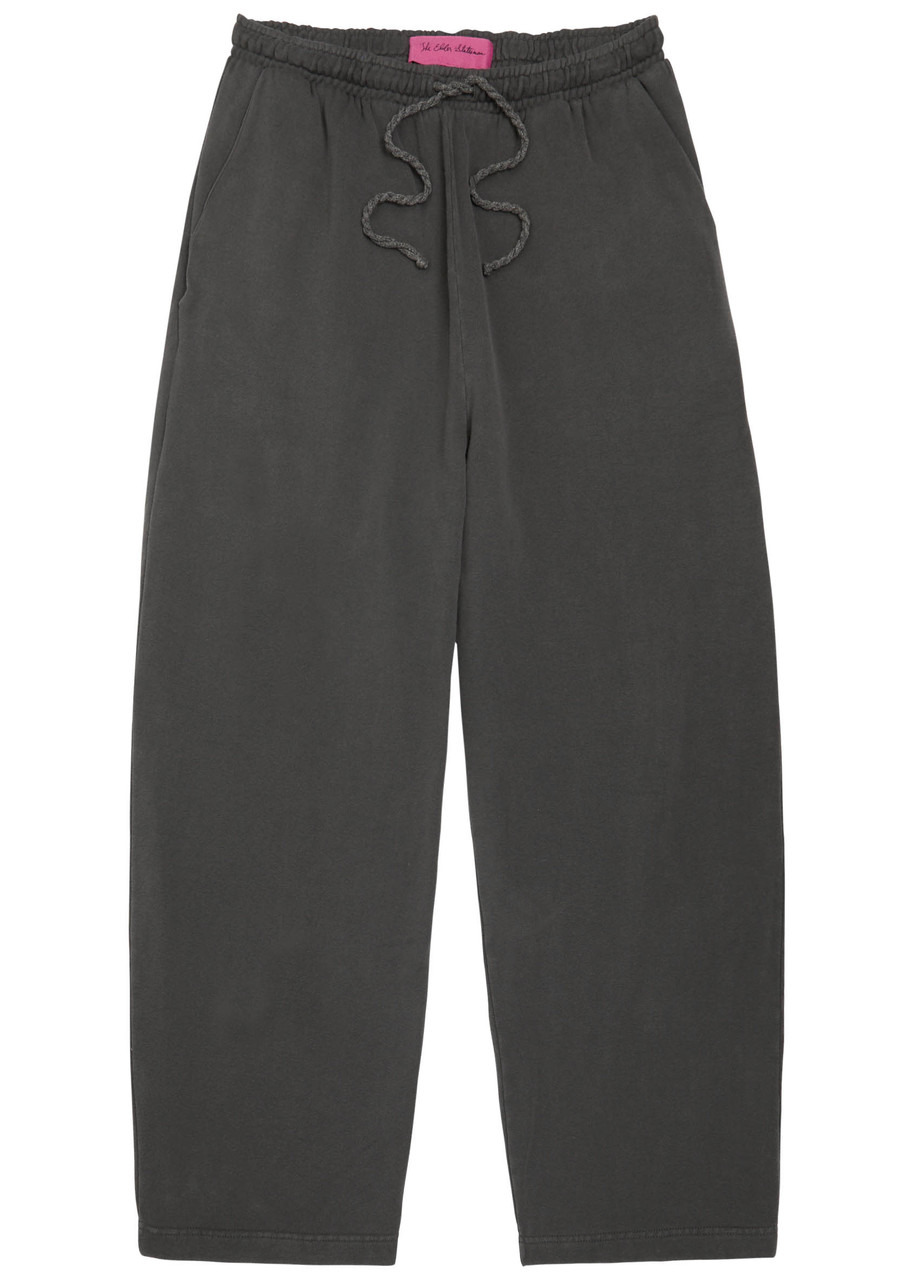 Info & Care The Elder Statesman cotton and cashmere-blend;sweatpants Elasticated drawstring waistband, side slip pockets, logo embroidery at;back, back patch pocket Pull on 96% cotton, 4% cashmere Machine wash Coordinating items available Size & Fit Inside leg length: 29 inches/ 73.5cm Midweight Loose, wide-leg cut; Model is 6'1"/ 185cm and wears a size medium