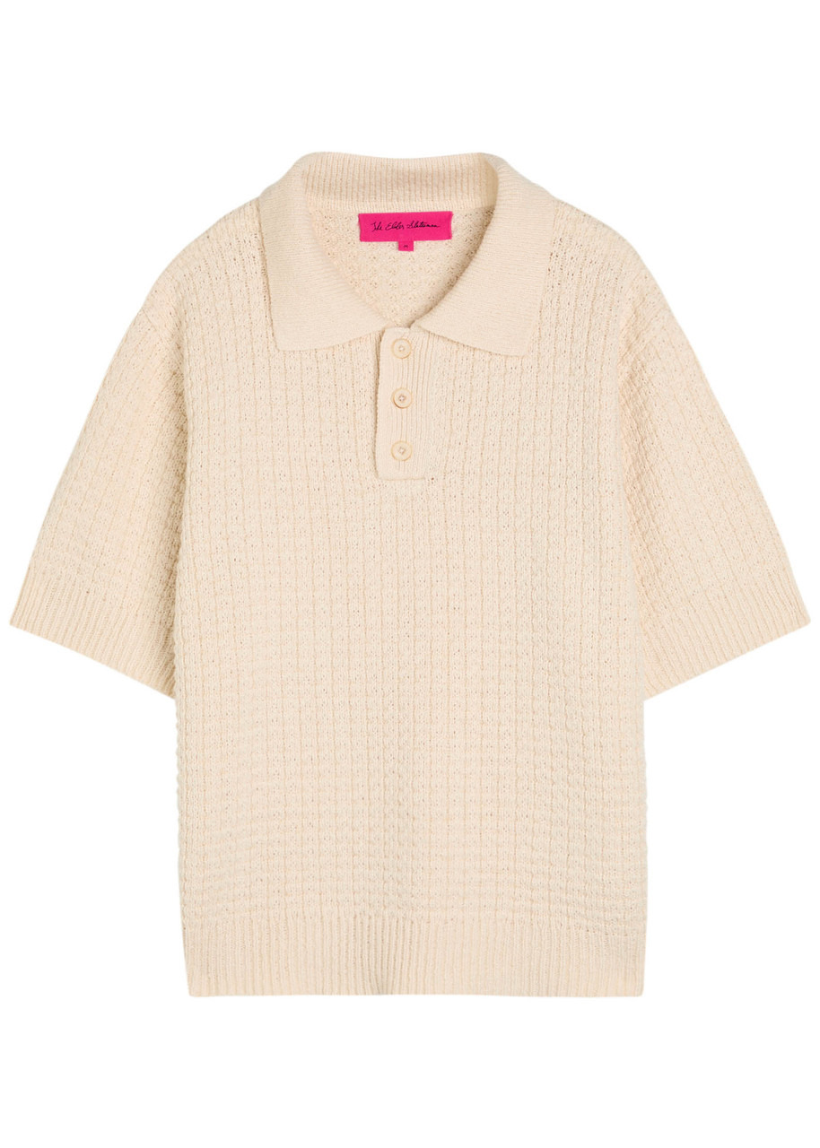 Info & Care The Elder Statesman cotton knit polo shirt Button-fastening neck,;ribbed trims Slips on 100% cotton Dry clean Size & Fit Length shoulder to hem: 24.5 inches/ 62.5cm Midweight Relaxed fit Model is 6'1"/ 185cm, chest size 38.5 inches and wears a size medium