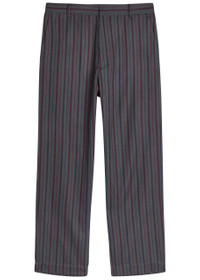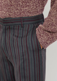 Info & Care The Elder Statesman wool and cashmere-blend trousers Striped, belt loops, side slip pockets, back slit pockets Concealed button, hook and zip fastening at front 50% wool, 50% cashmere Dry clean Size & Fit Inside leg length: 32 inches/ 81.5cm Midweight Straight-leg cut, tailored style Model is 6'2"/ 188cm and wears a size medium;