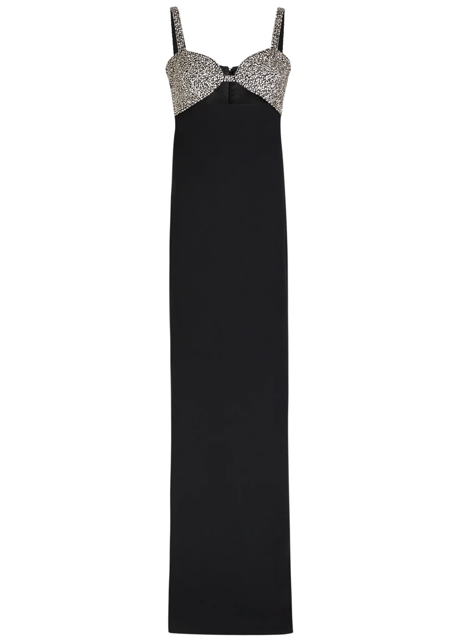Info & Care The New Arrivals crepe gown Crystal-embellished cut-out bust, sweetheart neckline, back vent, fully lined Concealed hook and zip fastening at back 100%;polyester Dry clean Size & Fit Length shoulder to hem: 65 inches/ 165cm Midweight Slim fit Model is 5'9"/ 175cm and wears a size;FR36