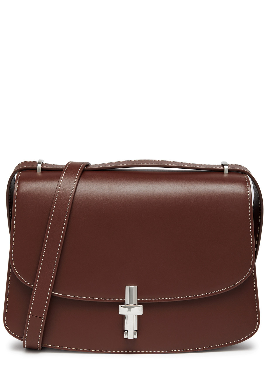 INFO & CARE - The Row leather shoulder bag - Adjustable shoulder strap, contrast stitching, two compartments, two internal slip pockets - Push-lock fastening at flap front SIZE & FIT - Width: 8.5 inches/ 21.5cm - Height: 6 inches/ 15.5cm - Depth: 2.5 inches/ 6.5cm - Min. shoulder strap drop: 10.5 inches/ 26.5cm - Max. shoulder strap drop: 19 inches/ 48.5cm