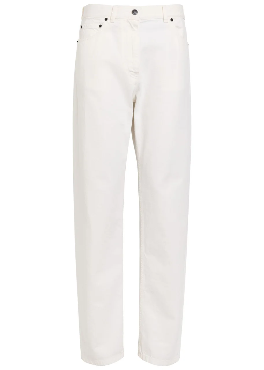 Info & Care The Row denim jeans Mid-rise fit, straight-leg cut, belt loops, five pockets Partially concealed zip and button fastening at front 100% cotton Machine wash inside out to avoid colour transfer Size & Fit Front rise: 11 inches/ 28cm Inside leg length: 32 inches/ 81.5cm Midweight Model is 5'10"/ 178cm and wears a size;W27