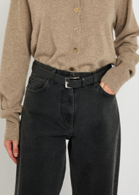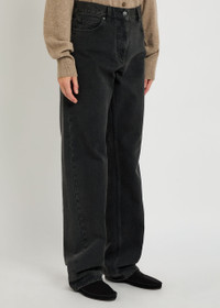Info & Care The Row denim jeans High-rise fit, straight-leg cut, belt loops, five pockets, faded finish Partially concealed zip and button fastening at front 100%;cotton Machine wash inside out to avoid colour transfer Size & Fit Front rise: 11 inches/ 28cm Inside leg length: 35 inches/ 89cm Midweight; Model is 5'9"/ 175cm and wears a size W27