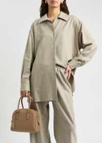Info & Care The Row grained nubuck top handle bag Two top handles with press-stud fastening tab, detachable adjustable shoulder strap, designer-engraved padlock embellishment, detachable designer tag with key, internal slip pocket, internal zip-fastening pocket, fully lined Zip-fastening across top Size & Fit Width: 9.5 inches/ 24cm Height: 7 inches/ 17.5cm Depth: 3.5 inches/ 9cm Top handle drop: 5 inches/ 12.5cm Min. shoulder strap drop: 17 inches/ 43cm Max. shoulder strap drop: 21 inches/ 53cm