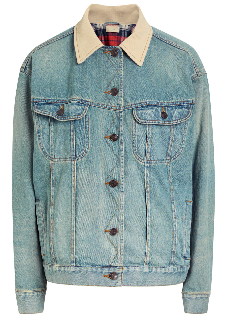 Info & Care The Row;denim jacket; Panelled, contrasting corduroy collar, dropped shoulders, button-fastening cuffs, button-fastening chest flap pockets, side slip pockets, button-fastening tabs at adjustable back hem, designer-engraved hardware, faded finish, fully lined Button fastenings through front; 100% cotton; Dry clean; Size & Fit Length shoulder to hem: 23.5 inches/ 60cm Midweight Relaxed, boxy fit Model is 5'9"/ 175cm and wears a size small