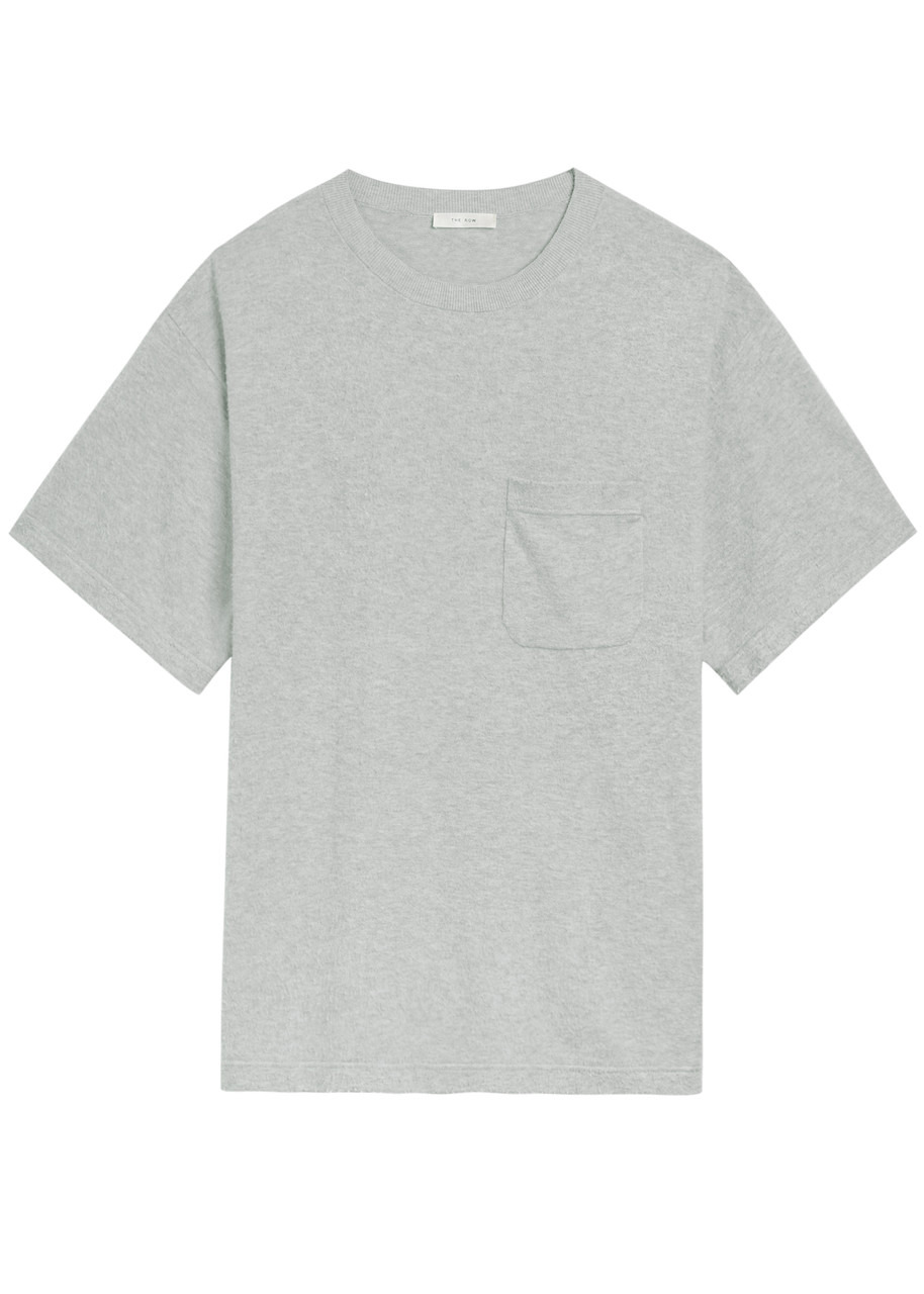 Info & Care The Row cotton-jersey T-shirt Melange, ribbed crew-neck, dropped shoulders, chest patch pocket, brushed finish Slips on 100% cotton Dry clean Size & Fit Length shoulder to hem: 28 inches/ 71.5cm Midweight Designed to be worn oversized, cut for loose fit Model is 5'9"/ 175cm and wears a size small