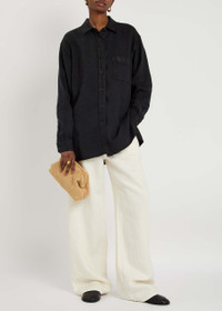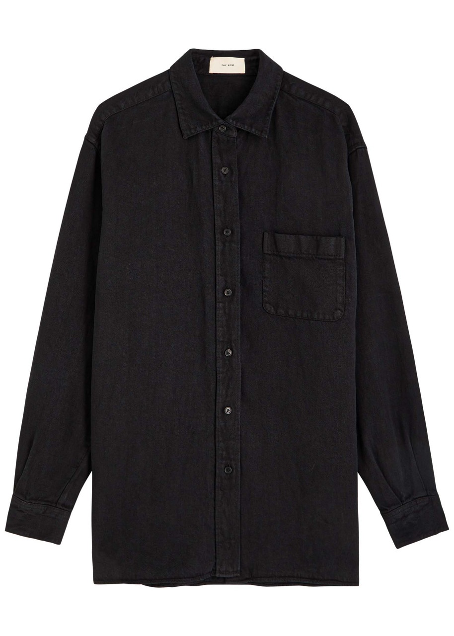 Info & Care The Row;denim shirt Dropped shoulders, pleats at button-fastening cuffs, chest pocket, side splits, curved hem, longer back hem, washed and faded finish Button fastenings through front 100% linen Dry clean Size & Fit Length shoulder to hem: 30.5 inches/ 77.5cm; back: 32.5 inches/ 83cm Midweight Loose fit Model is 5'10"/ 178cm and wears a size US4