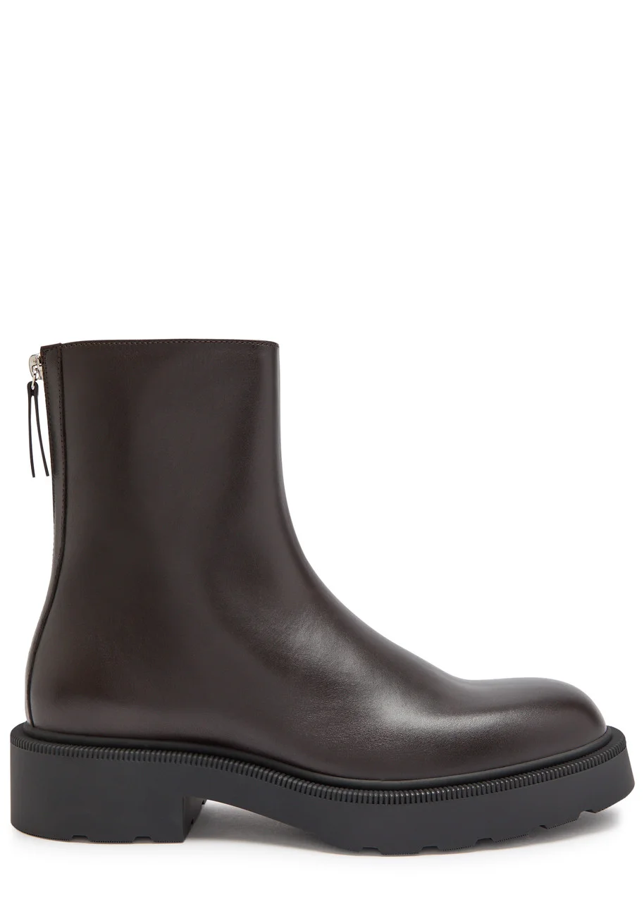 Info & Care The Row leather ankle boots Textured details at rubber midsole, gripped rubber sole, round toe Zip fastening at back Size & Fit Only available in full sizes, go up to the nearest whole size if you take a half size;