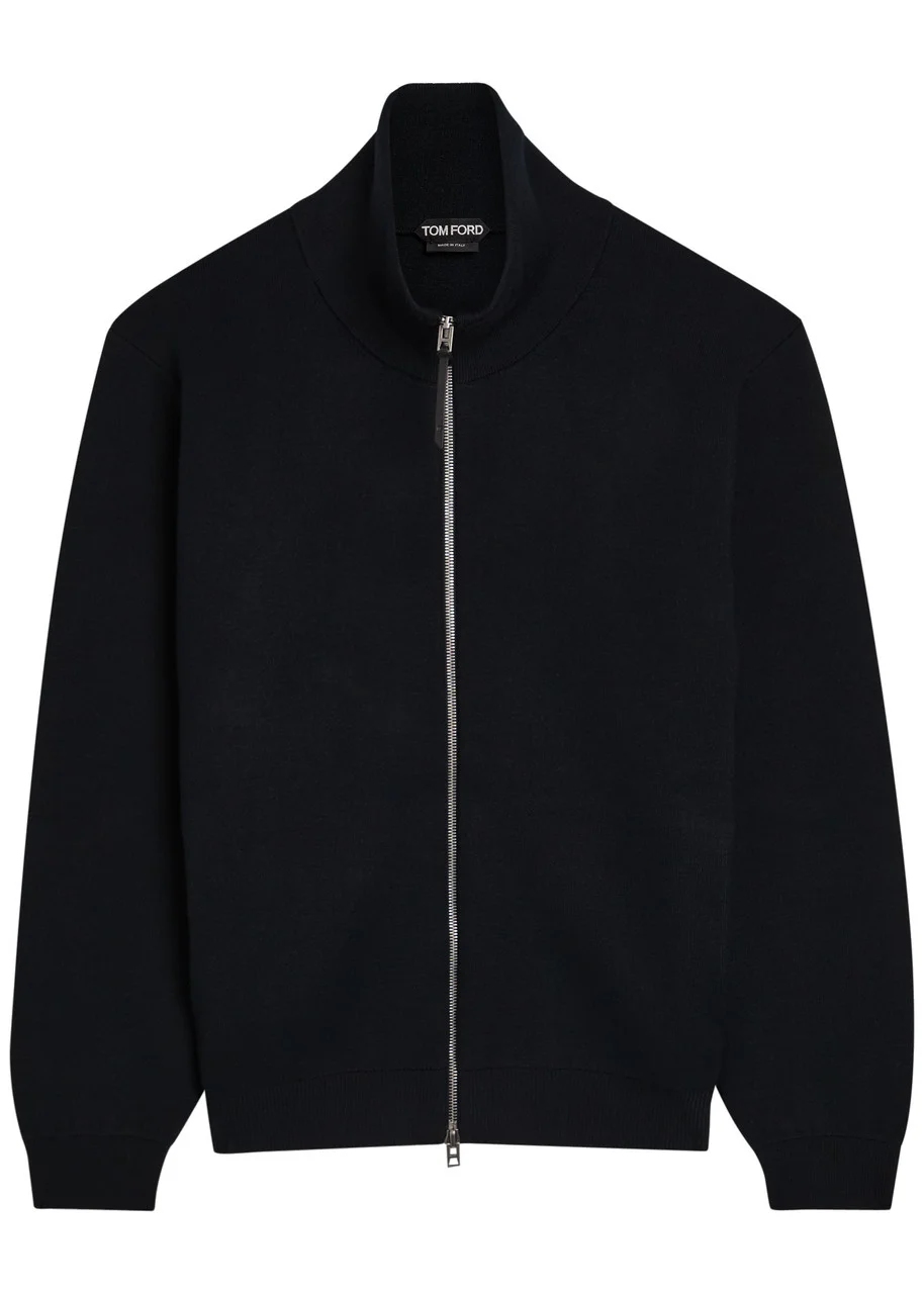 Info & Care Tom Ford wool-blend jacket High-neck, side slip pockets, ribbed trims Two-way zip fastening through front 96% wool, 3% polyamide, 1% elastane Dry clean Size & Fit Length shoulder to hem: 26 inches/ 66cm Midweight Regular fit Model is 6'2"/ 188cm, chest size 38 inches and wears a size;IT48