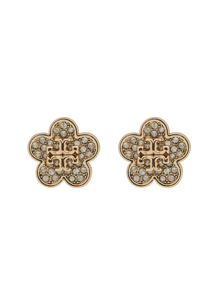 Tory Burch Kira Floral Pavé 18kt Gold-plated Stud Earrings