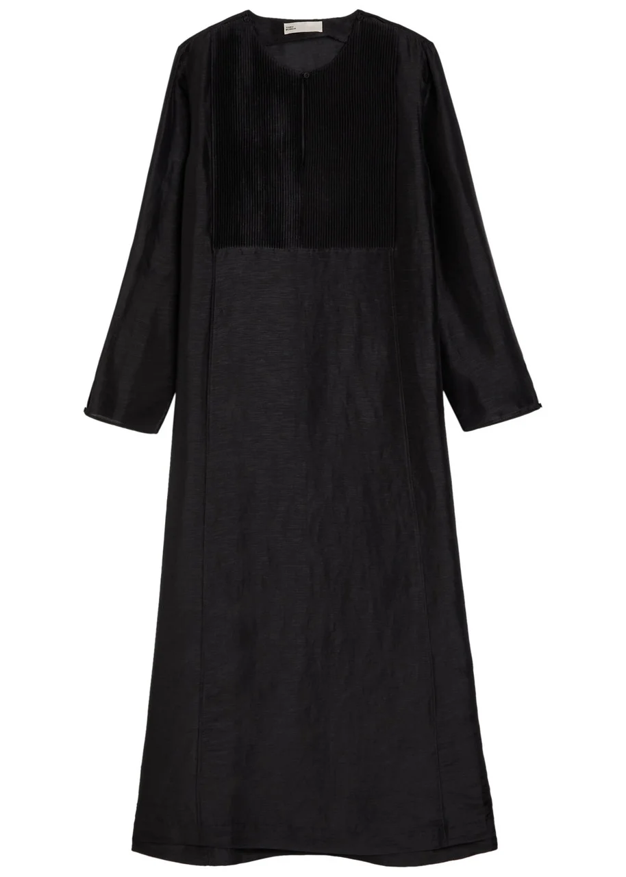 Pleated linen and silk kaftan