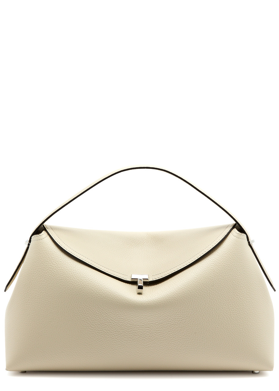 INFO & CARE - Toteme grained leather top handle bag - Top handle, adjustable detachable shoulder strap, logo print at front, two internal patch pockets, feet, suede lining - Twist-lock fastening at front SIZE & FIT - Width: 14 inches/ 35.5cm - Height: 7 inches/ 18cm - Depth: 4.5 inches/ 11.5cm - Top handle drop: 3 inches/ 7.5cm - Min. shoulder strap drop: 15 inches/ 38cm - Max. shoulder strap drop: 18 inches/ 46cm